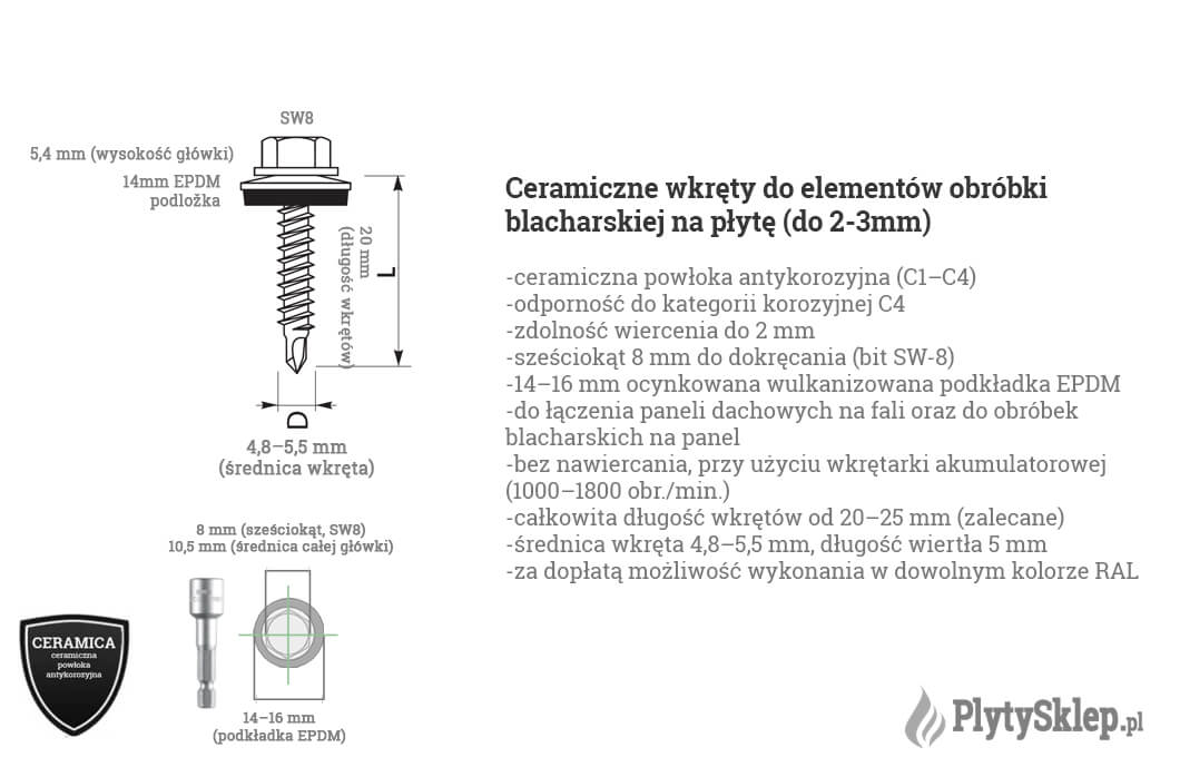 Ceramiczne wkręty do elementów obróbki blacharskiej na płytę (do 2-3mm)