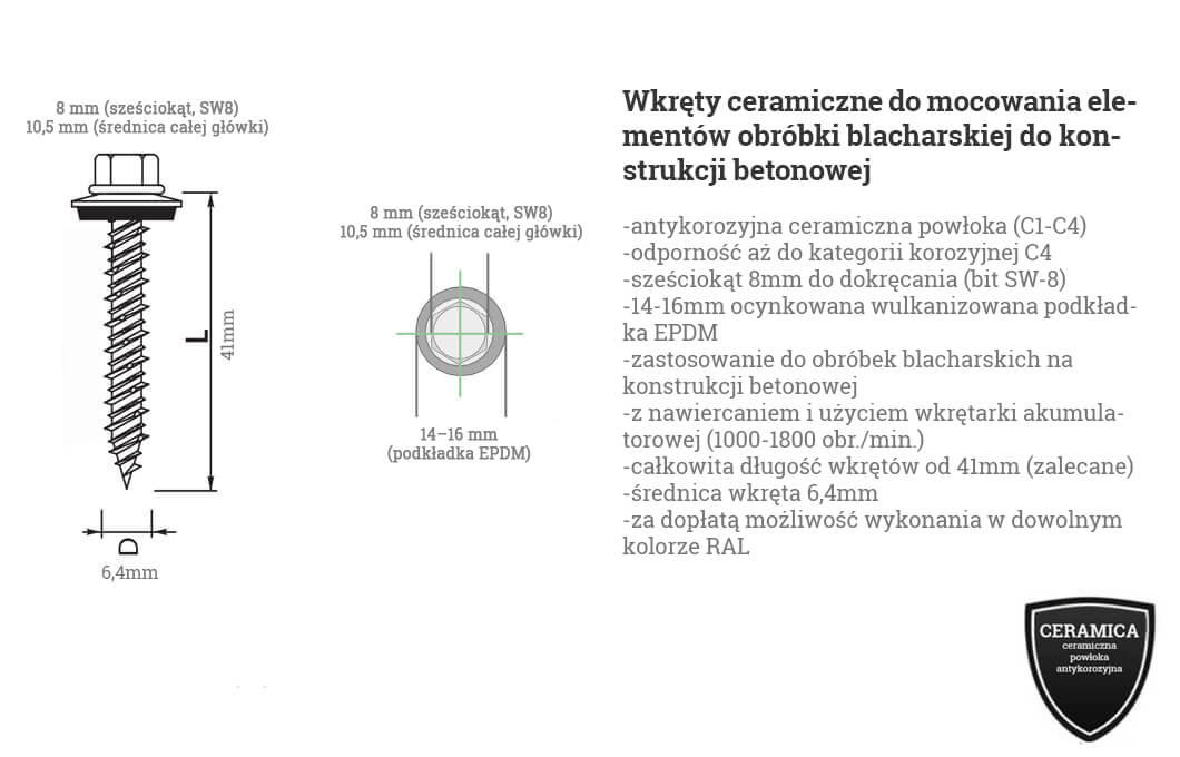 Wkręty ceramiczne do mocowania elementów obróbki blacharskiej do konstrukcji betonowej