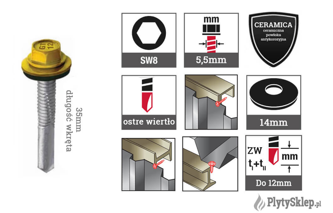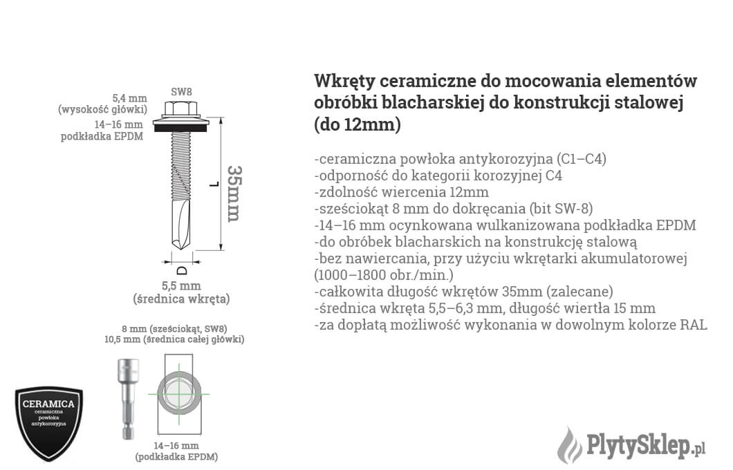 Wkręty ceramiczne do mocowania elementów obróbki blacharskiej do konstrukcji stalowej (do 12 mm)